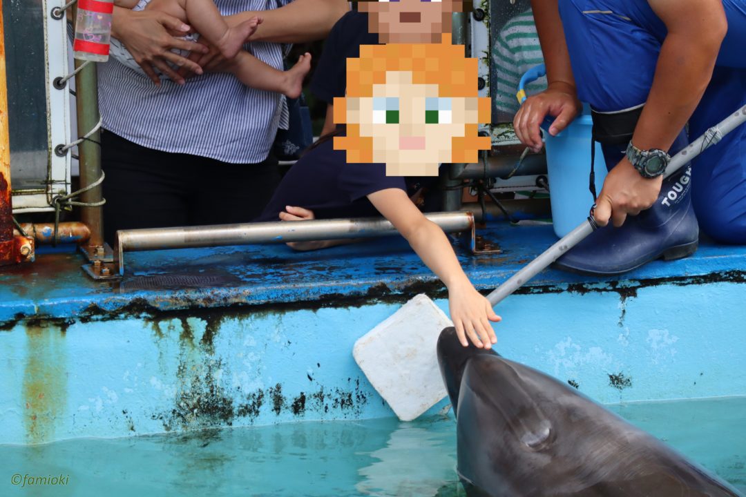 - フリッパープールでイルカのおでこタッチができる